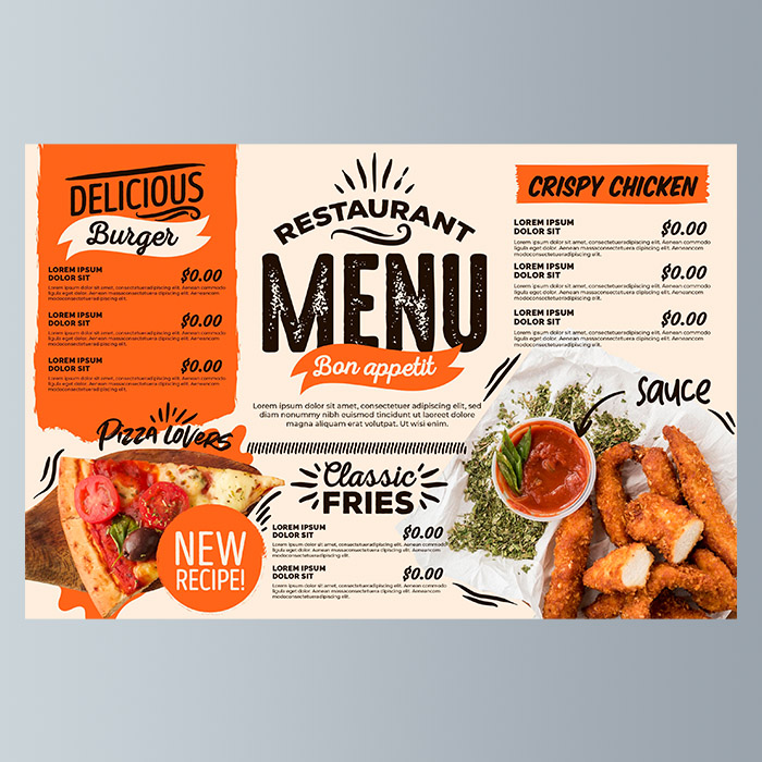 Presenta tus platos en un espacio único de forma simple y elegante. Cartas para restaurantes que se ajustan a tus necesidades.